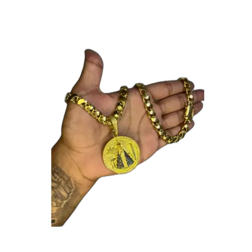 Santa cravejado – corrente 8mm+ pingente + dedeira